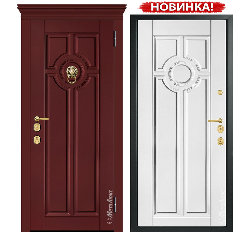 Внешняя панель: Фрезерованная влагостойкая панель МДФ высокой плотности 16 мм, эмаль, цвет на выбор, ручка-стучало “Лев”