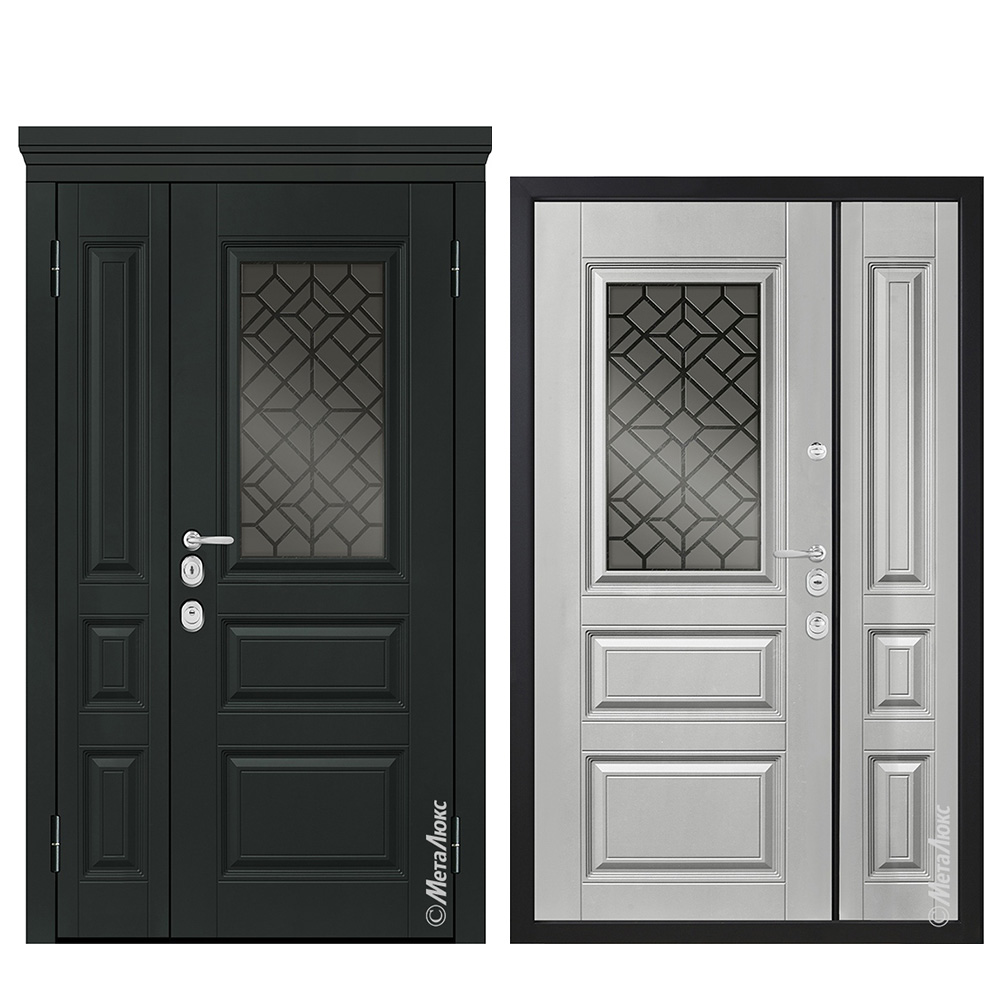 Внешняя панель: Фрезерованная панель МДФ высокой плотности 16 мм, эмаль, стеклопакет с вкладной декоративной решеткой
